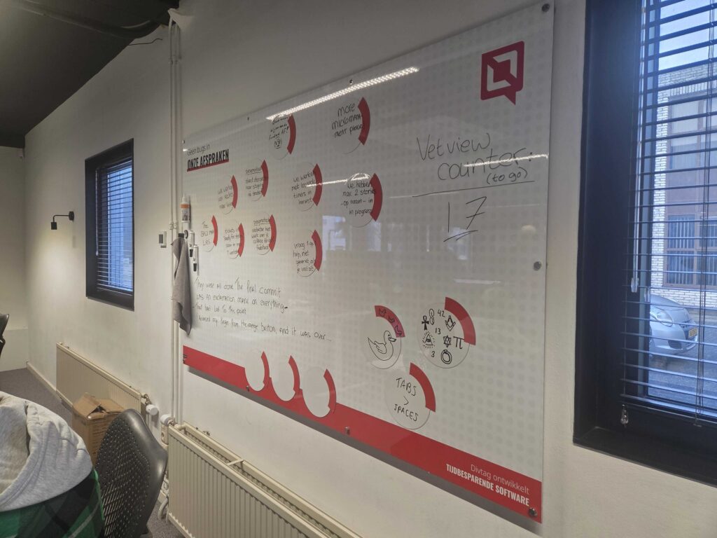 Bij Divtag werken we graag op een manier die duidelijk, praktisch en effectief is. Daarom hebben we recent een nieuw Visual Board geïntroduceerd in ons kantoor. Dit fysieke bord – ook te zien als verbeterbord of agile board – helpt ons om tijdens onze agile sprints te blijven reflecteren, verbeteren en structureren. Het maakt afspraken zichtbaar, houdt verbeterpunten dichtbij en ondersteunt onze verdere professionalisering richting ISO-certificering. Het Visual Board is daarmee een concreet hulpmiddel dat onze focus op continue verbetering tastbaar maakt.